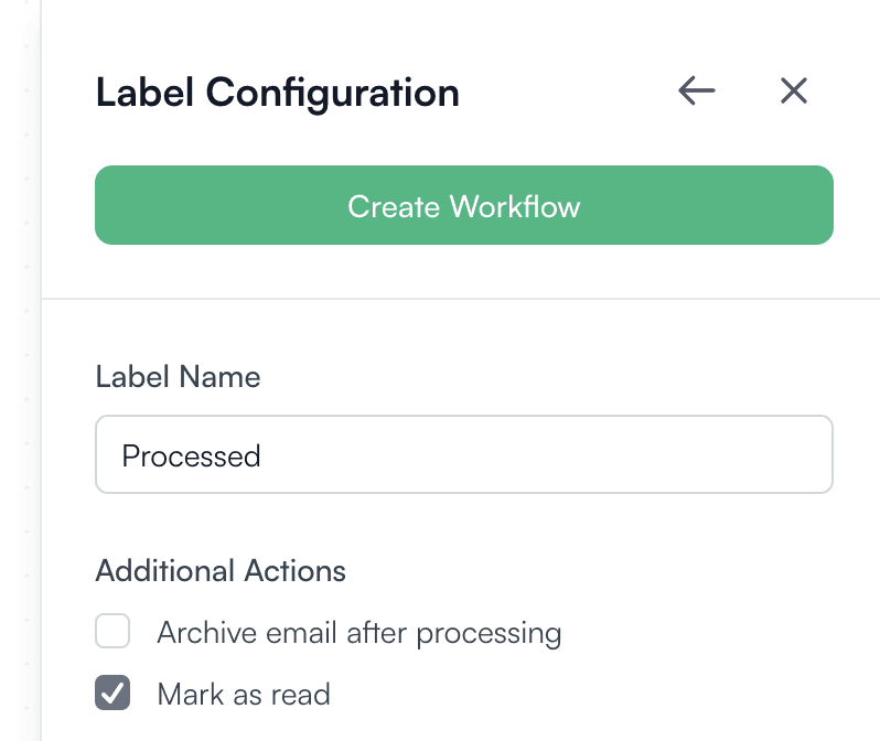 Applies your optional settings, such as adding a label or marking the email as read