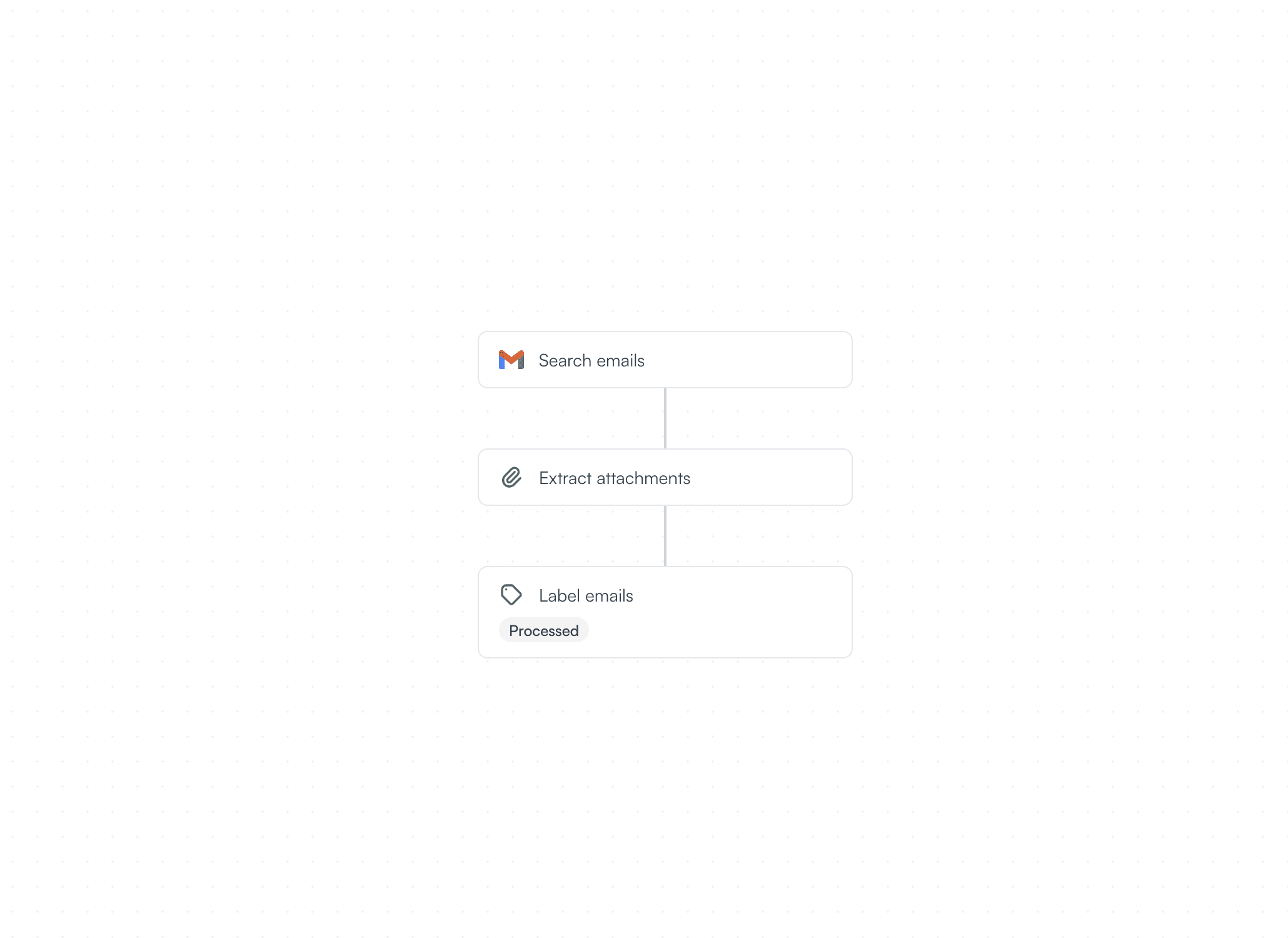 Dioveo continuously monitors your inbox and triggers the workflow only when a new email arrives that matches your query. When this happens, Dioveo performs the following steps securely: